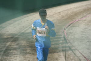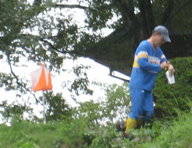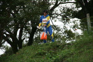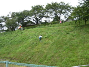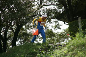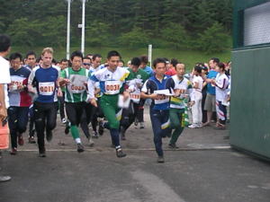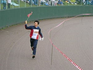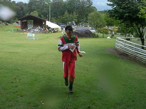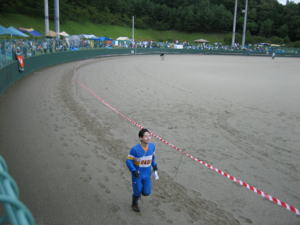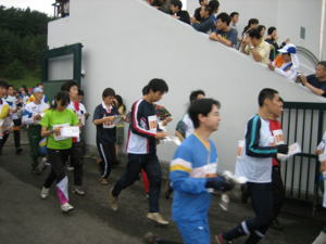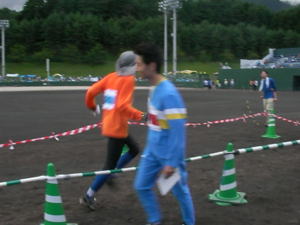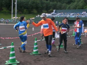 | 続々帰ってくる1走者。 勢い余って、斜面を転げ落ちた人も。 |