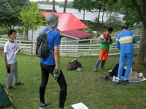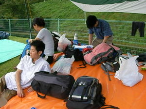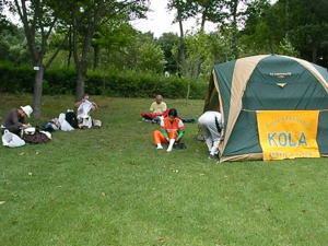 | 芝生広場にテントを張って、 思い思いに、出発。 |