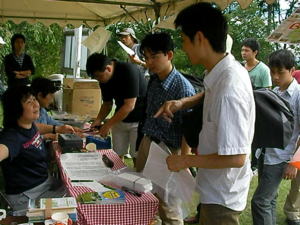 昼食後、受付で本日参加の手続きを 済ませる。 |