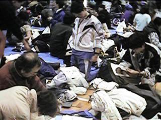 会場内(更衣室として使っている体育館)は、外が雨ということもあり、ごった返していました。 | |||||||