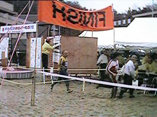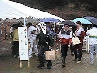 速報所の前は、普段ならもっと込み合うのですが、雨のため見に行っている人は、少なかったですね。 速報自体も出るのが遅く、僕(横田M35A)の速報も、13:00に、まだ出ていませんでした。雨でぐしょぐしょになったチェックカードのチェックに時間がかかっていたのでしょうか。 |