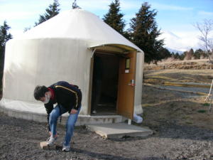 | KOLAのメンバーは、 こどもの国のパオに宿泊。 朝方は、霜柱がたくさん見られました。 |