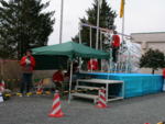 会場、ゴール付近です。 ビジュアルで、通過するエリート選手が 確認出来ます。 ステージでは、速報も。 |