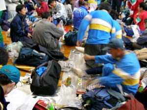 | 会場となった体育館は、 参加者がごった返していました。 |